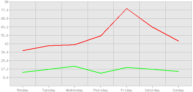 | Четверг | 51 | 14,37% | 13 | 11,3% |