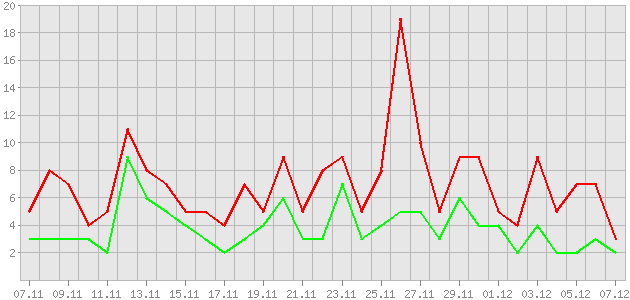 | 05.12.2025 | 7 | +2 | 3,23% | 2 | 1,69% | |