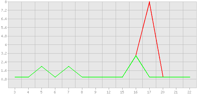 | 3 | 1 | 4% | 1 | 5,56% | | 4 | 1 | 4% | 1 | 5,56% | | 5 | 2 | 8% | 2 | 11,11% | | 6 | 1 | 4% | 1 | 5,56% | | 7 | 2 | 8% | 2 | 11,11% | | 8 | 1 | 4% | 1 | 5,56% | | 9 | 1 | 4% | 1 | 5,56% | | 12 | 1 | 4% | 1 | 5,56% | | 15 | 1 | 4% | 1 | 5,56% | | 16 | 3 | 12% | 3 | 16,67% | | 17 | 8 | 32% | 1 | 5,56% | | 20 | 1 | 4% | 1 | 5,56% | | 21 | 1 | 4% | 1 | 5,56% | | 22 | 1 | 4% | 1 | 5,56% | | Итого | 25 | 17 |