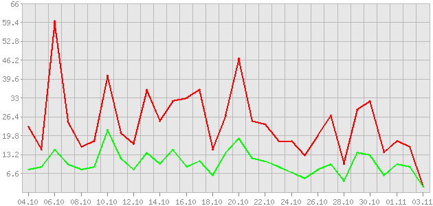 | 16.10.2025 | 33 | +1 | 4,38% | 9 | -6 | 2,82% |
